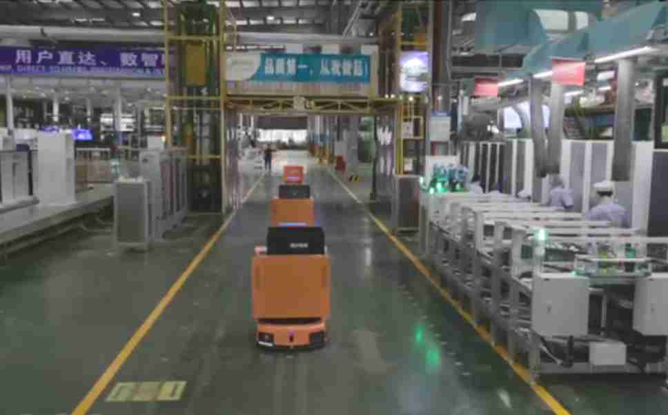 为车载冰箱物流配送打造的智能解决方案,,,,包含产中物流通过潜伏举升AMR搬运至线边,,,,产后成品物流智能仓储,,,,流程包含产中物流智能齐套入库,,线边安灯叫料AMR智能配送至线边,,,成品入库、、、、出库,,,通过无人堆高车机器人,,,智能仓储管理替代人工作业管理,,,实现更高存储、、、、更高效率、、、、更具柔性化的解决方案。。。。